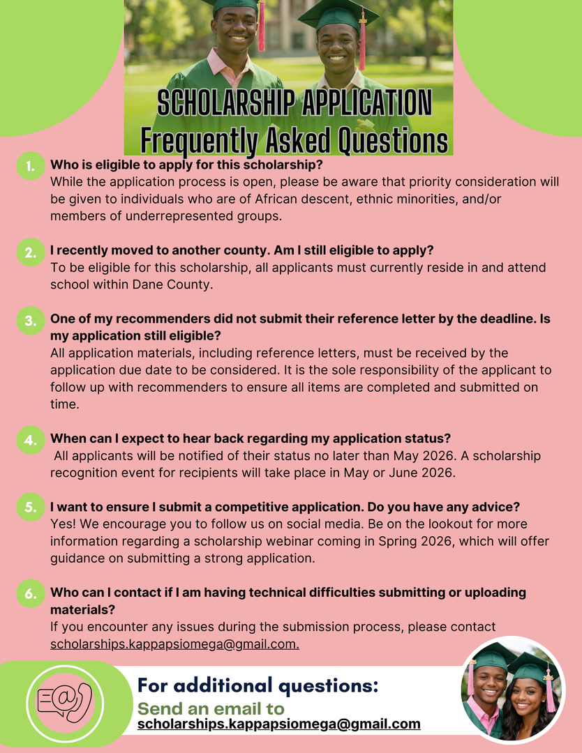 For more information, please contact the Scholarship Committee at scholarships.kappapsiomega@gmail.com.